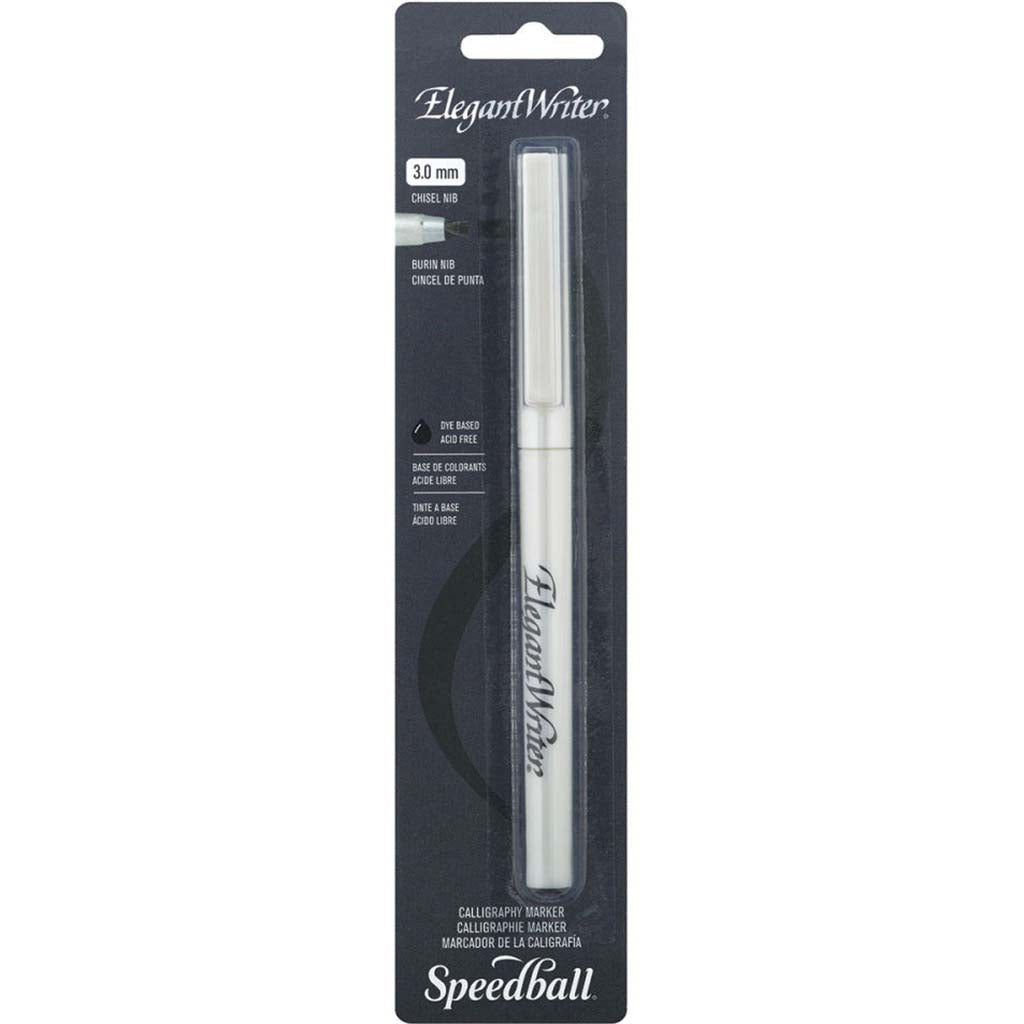Elegant Writers have a calligraphy chisel point. Water soluble, safe for children.