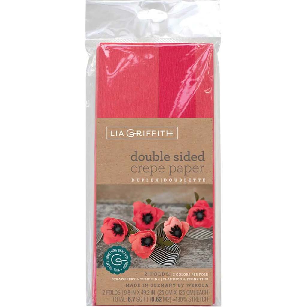 Pack of 2 double sided (Strawberry & Tulip Pink + Flamingo & Peony Pink), extra fine crepe papers from DIY designer Lia Griffith comes with a total of 4 colors inspired by nature in each pack. This crepe paper is made in Germany by Werola and created specifically for exquisite handcrafting. Double sided crepe includes two layers of extra fine crepe, allowing crafters to create texture and depth in their designs. Stretch, curl, twist and cut these beautiful and malleable papers to make stunning crafts that last a lifetime.