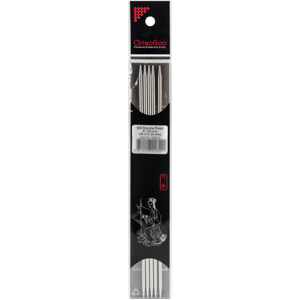 Made of surgical stainless steel, these double points have precisely machined and perfectly tapered tips. They have a smooth, satin-sheen finish with the size permanently laser imprinted on each needle. While lightweight and durable these needles are also very strong. This package contains five 8 inch long double point knitting needles. Size: 3/3.25mm