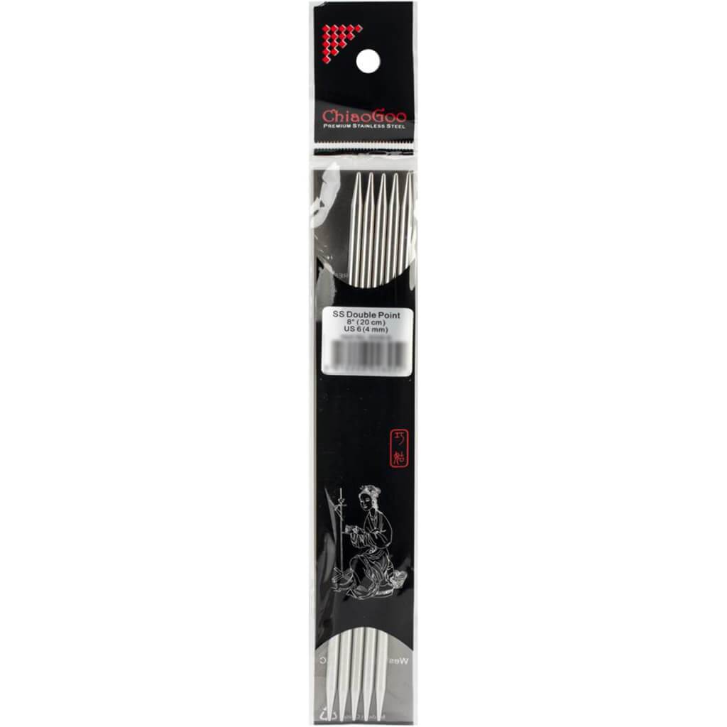 Made of surgical stainless steel, these double points have precisely machined and perfectly tapered tips. They have a smooth, satin-sheen finish with the size permanently laser imprinted on each needle. While lightweight and durable these needles are also very strong. This package contains five 8 inch long double point knitting needles. Size: 6/4mm.