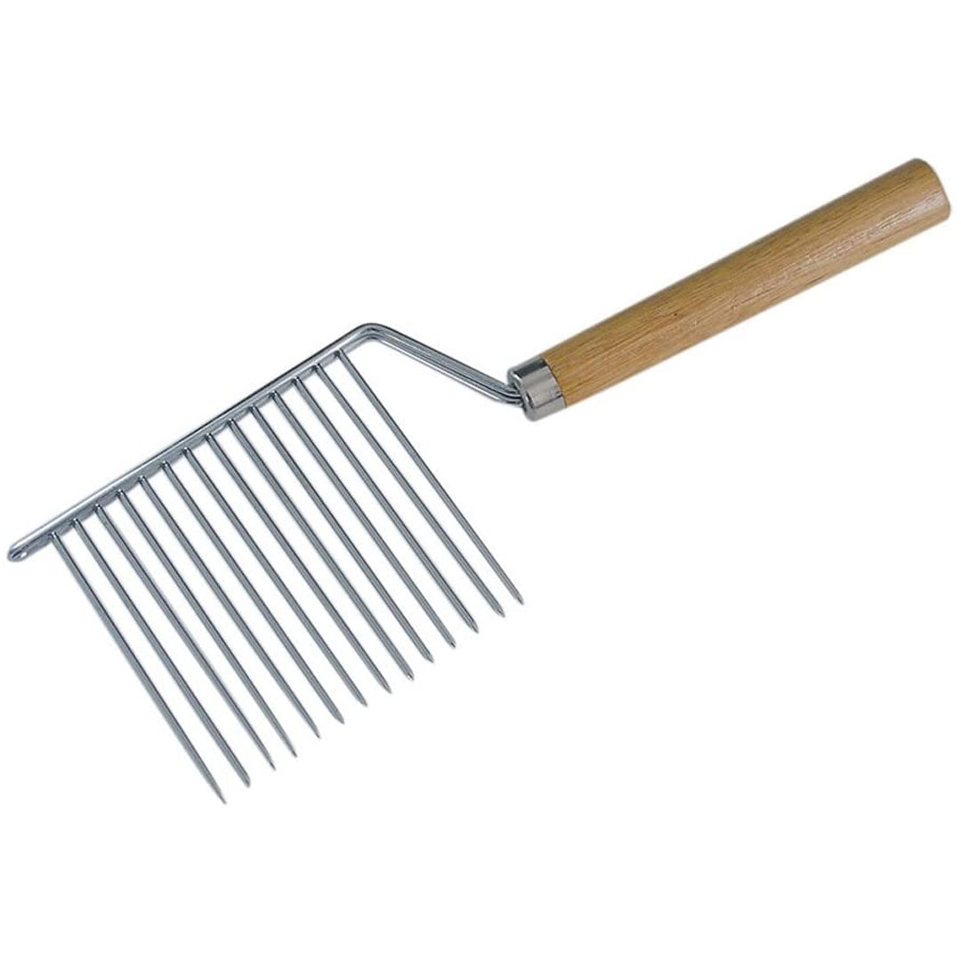 • One stainless steel angel food cake braker • Has a wooden handle • Press into cake and use gentle back and forth motion to cut cake • Hand wash and dry thoroughly before storing