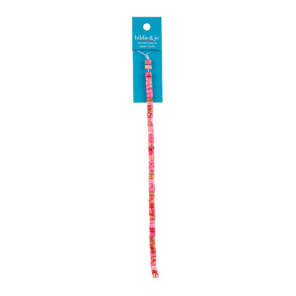 Accessorize your look by wearing a gorgeous piece of jewelry made with the hildie & jo Cylindrical Imperial Jasper Strung Beads. These cylindrical stone beads flaunt an eye-catching textured pattern. You can use them to create beautiful handcrafted necklaces, charms bracelets, keychains and more.
