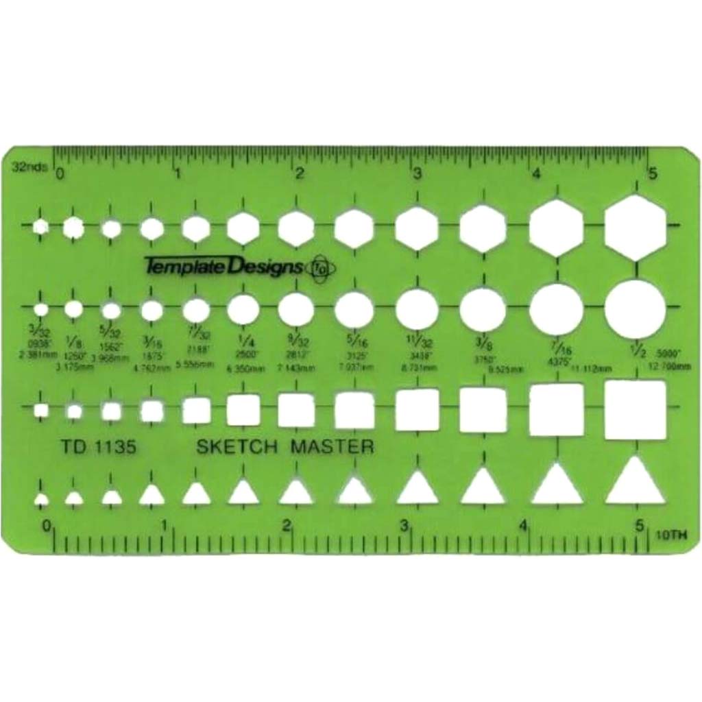 Contains hexagons, circles, squares, and triangles in 12 sizes. Size: 3½" x 5-7/8" x .030"