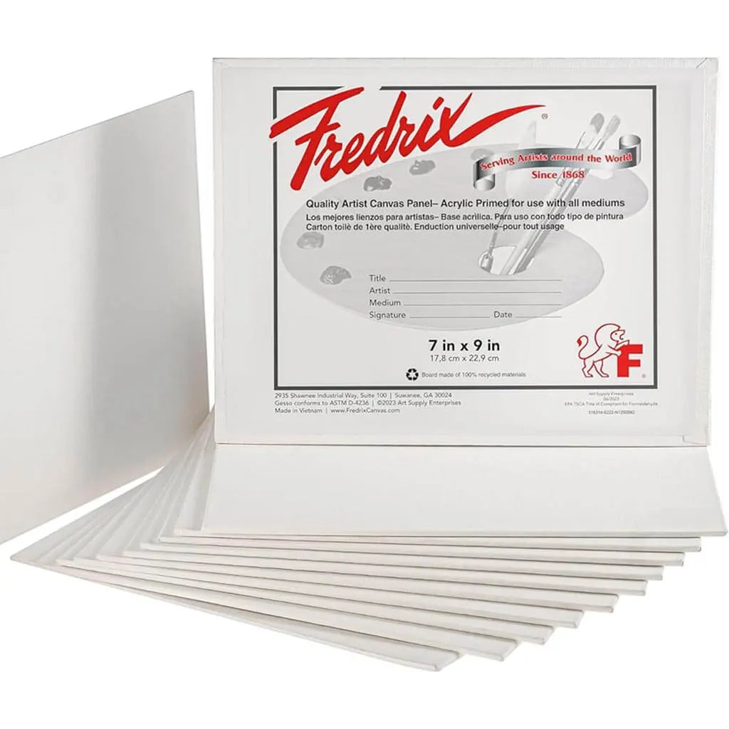 These canvas panels are great for students. The surface texture provides a very definite paint-gripping "tooth" with minimum paint absorption, a perfect support for painting with most media. Artist Series panels are double-primed with an acid-free acrylic titanium gesso. The sides are completely turned under and glued to prevent fraying and separation. A versatile option for oils, acrylics, water soluble oils, paint markers, permanent markers, spray paints and alkyds.