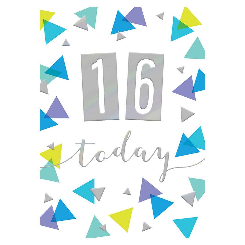 This festive 16th birthday card will make their sweet sixteen even sweeter with a pattern of multicolor triangles! Embossed details and silver holographic foil add festive touches of style, perfect for showing the young adult in your life how special they are!