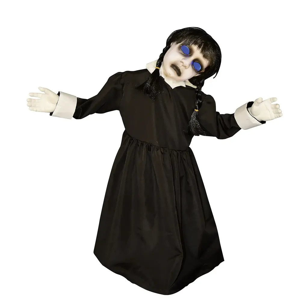 Bring spine-chilling realism to your haunted setup with the Animated Creepy Girl, 27.6 inches tall. This eerie prop features lifelike movements and haunting details designed to captivate and terrify anyone who crosses her path. Perfect for haunted houses, Halloween parties, or front-yard displays, this creepy figure adds just the right amount of horror to your seasonal decorations. Easy to set up and durable enough for repeated use, it’s the ideal choice for those who love to create unforgettable frightful experiences.