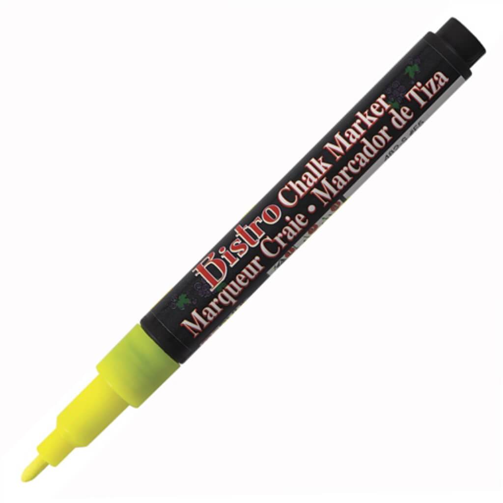 A water based chalk paint that is pigmented for use on chalkboards, light boards, glass, mirrors, dry erase and most non-porous surfaces. This package contains one 5 inch long fine point chalk marker.