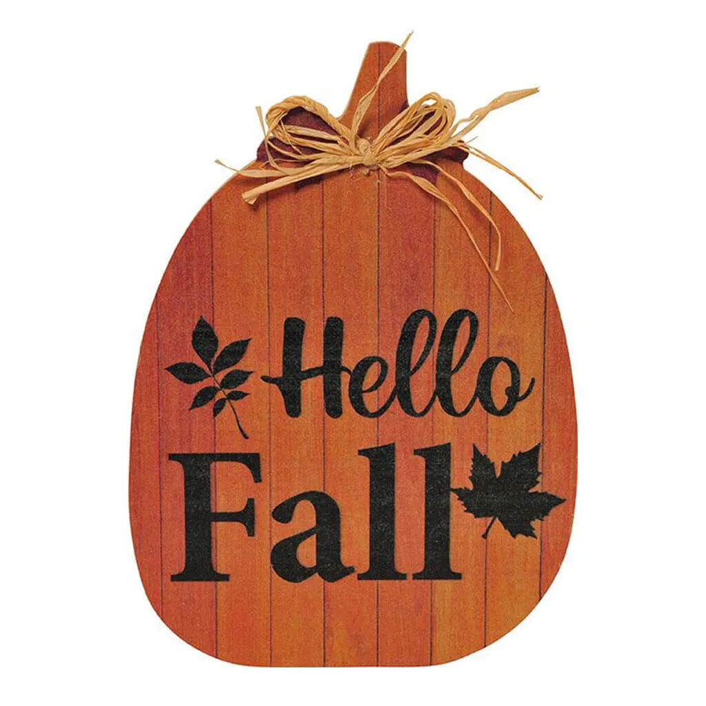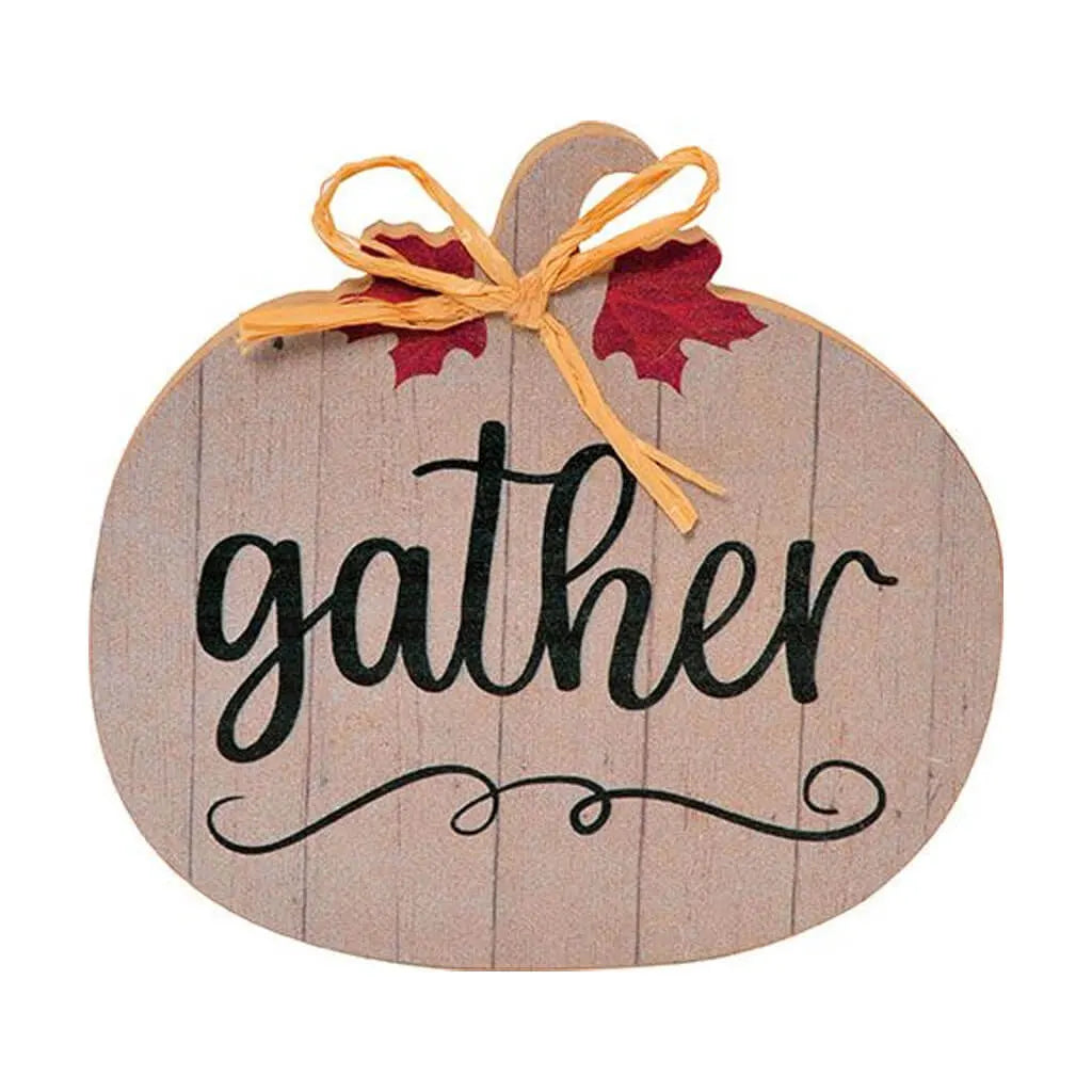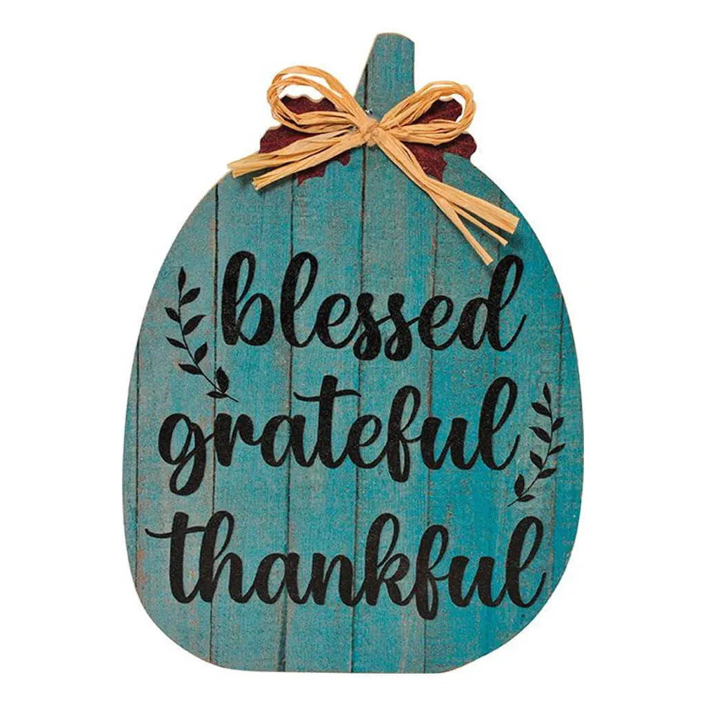 What's Included • INCLUDES • 1 Pumpkin Sign with Saying • 4 Styles/Colors Assorted • Blessed/Teal Tall • Fall/Orange Tall • Gather/TanShort • Happy Harvest/Orange Short