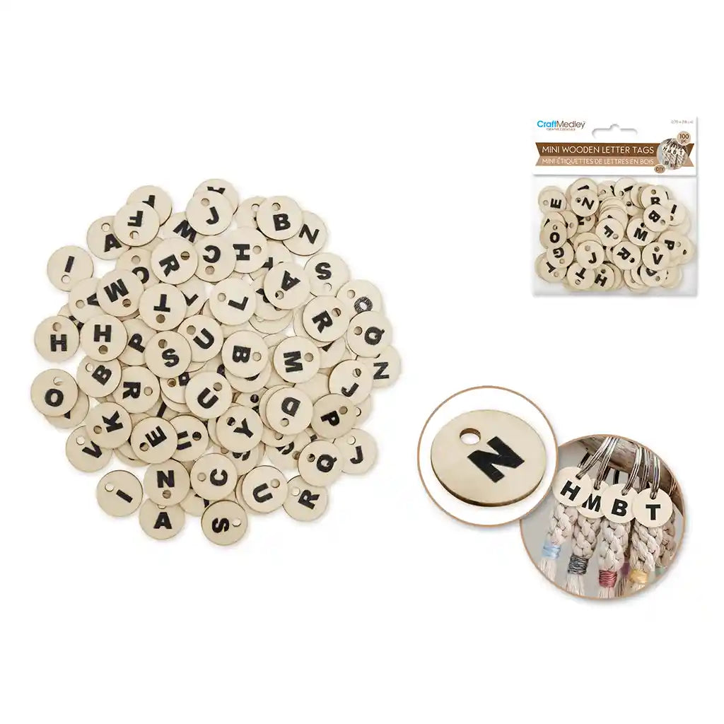 Craftwood: Mini Letter Tags 100/Pk A-Z Round Tag