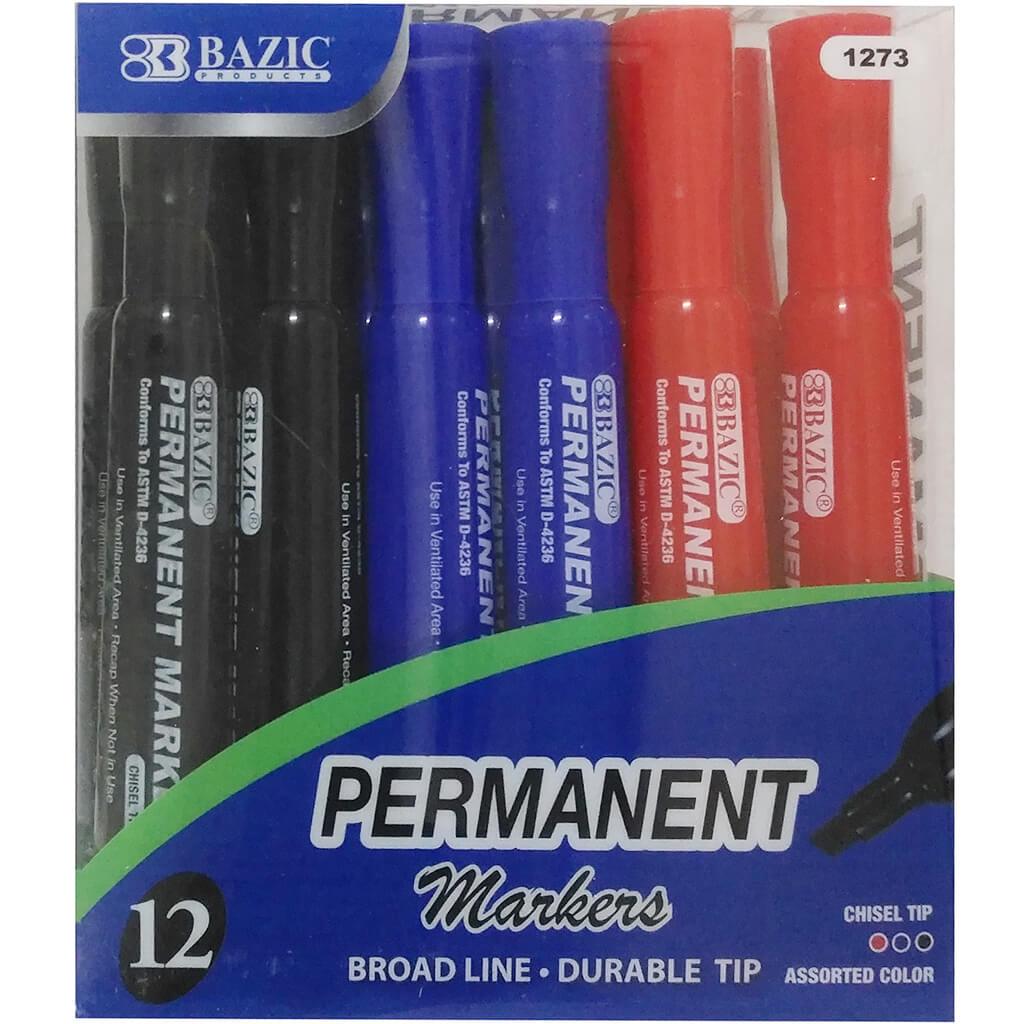 Desk Style Permanent Markers Chisel Tip Assorted Color 12/Pack