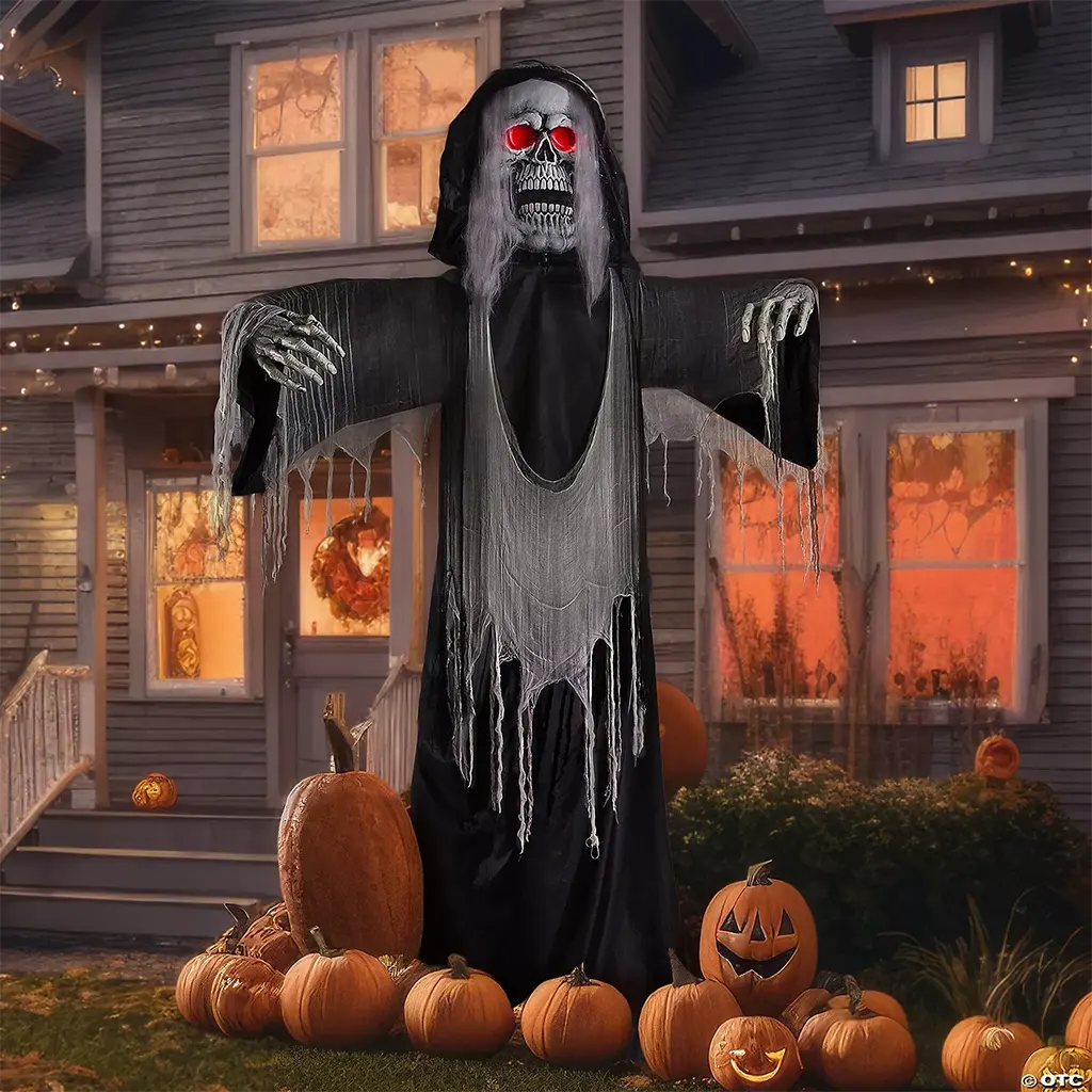 Transform your Halloween setup with the spine-chilling 12' Animated Standing Reaper. This towering figure is not just a decoration; it’s a statement piece that will leave your trick-or-treaters trembling in fear. Standing at an impressive 12 feet tall, this reaper brings an eerie presence to your yard, making it the perfect centerpiece for your Halloween display.