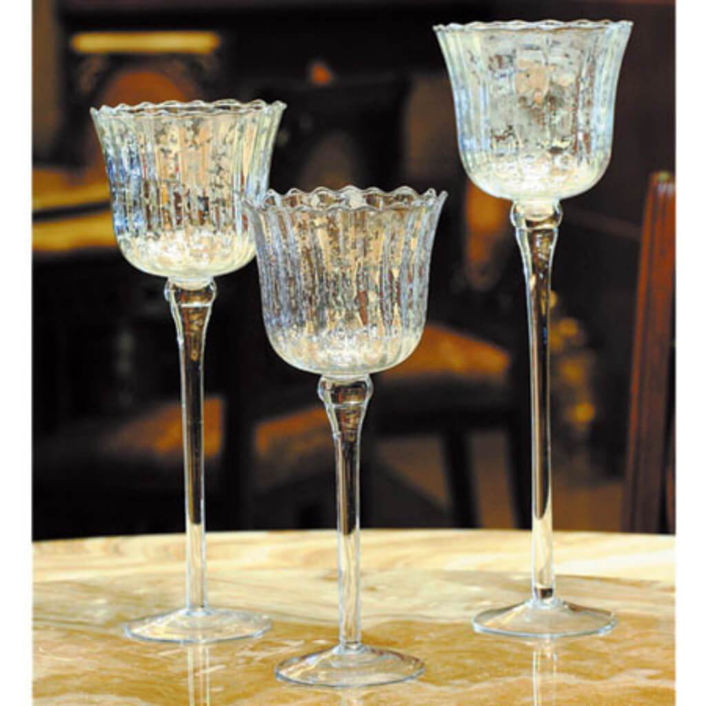 Candleholder Set Of 3 H:12"14"15.5" D:5" Silver