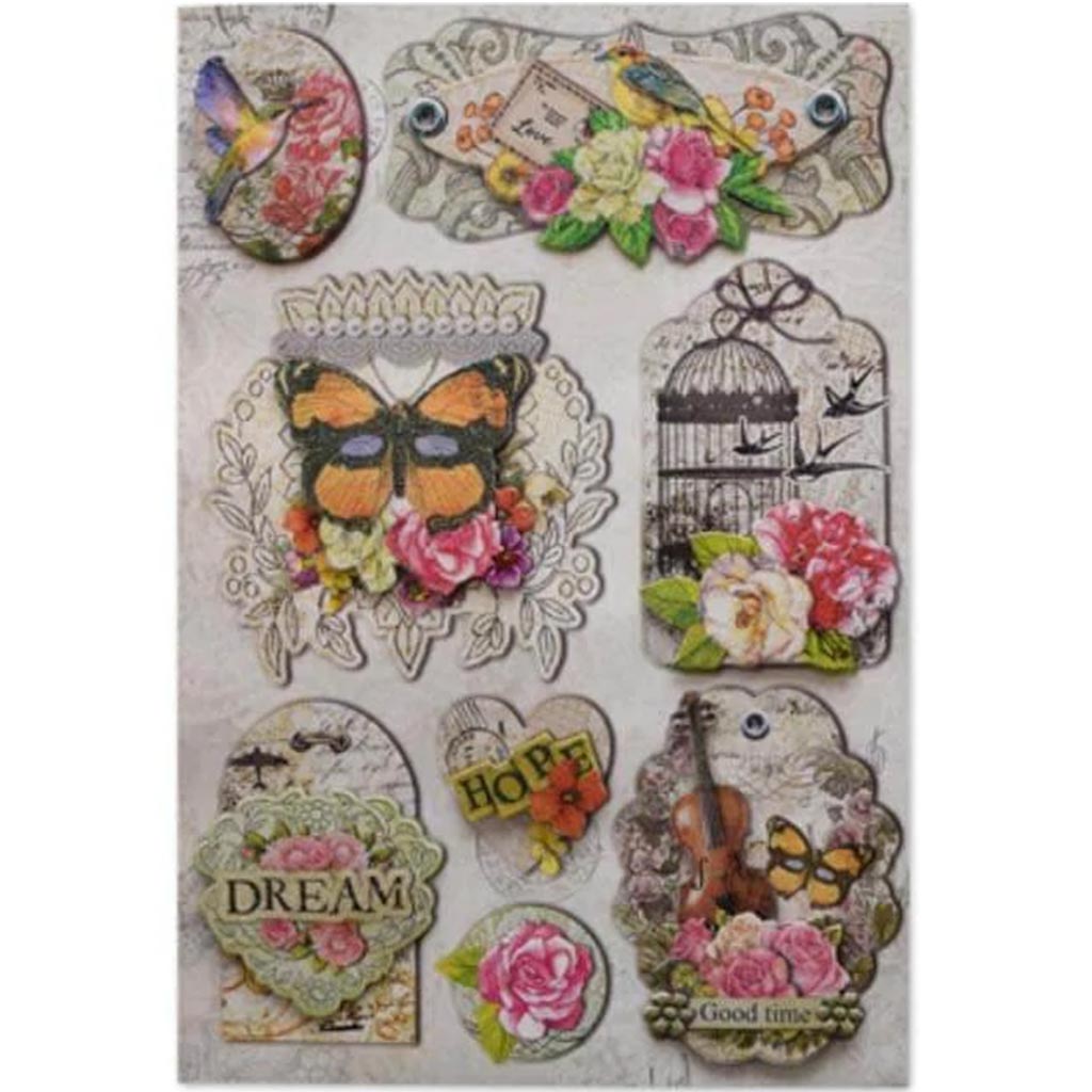 HANDMADE STICKER: 12.5CMX18.5C 3D GLITTER THEMED VINTAGE FLOR