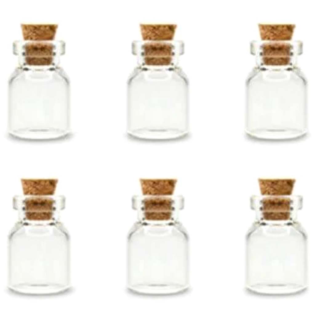 GLASS BOTTLES: MINI CONTAINERS W/CORK LID X6 1.5ML