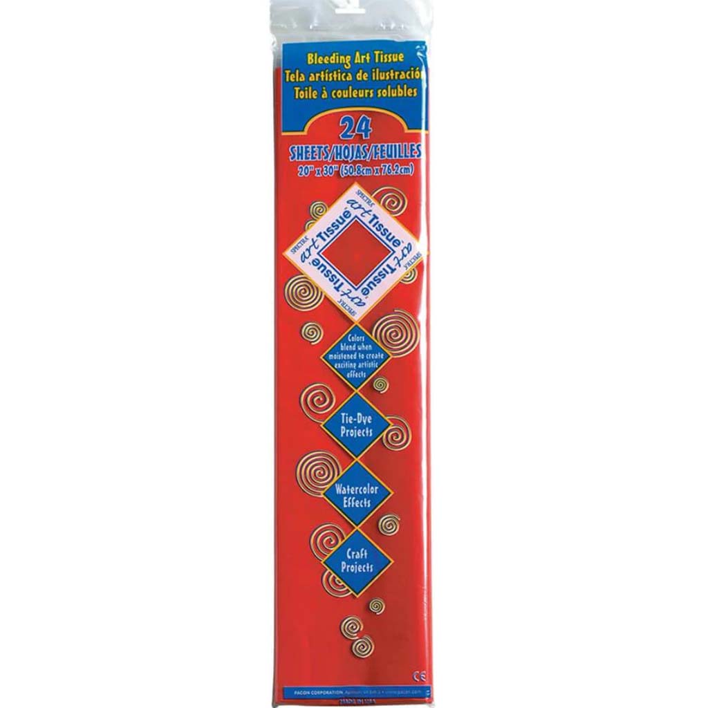 Rich, vibrant colors blend when moistened to create exciting artistic effects. Wet with a brush and wash beautiful, translucent color on to the paper. Overlap two colors and watch them blend. Or, add glue to the water to hold specific shapes in place and create magnificent, multi-layered effects. Spectra® Deluxe Bleeding Art Tissue™ is a fine-quality deluxe-grade tissue that bleeds, making it easy to create arts and crafts projects with a beautiful watercolor look. It is available in many stunning colors to inspire creativity. The high-quality tissue can withstand cutting, crinkling and folding without tearing.