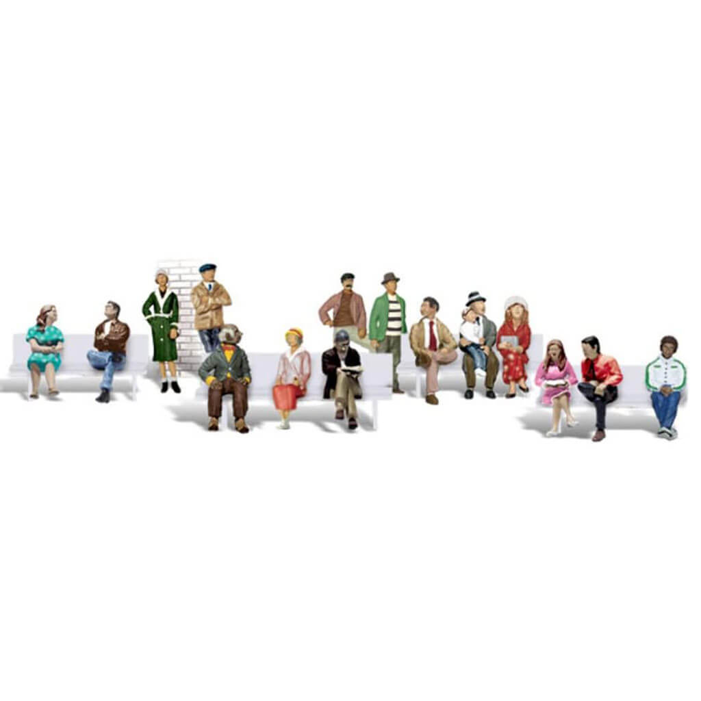 The name says it all. Some sit, some stand, but all wait for a train or bus, with their bags packed. Set contains 16 pieces. Benches not included. Colors may vary from actual product.