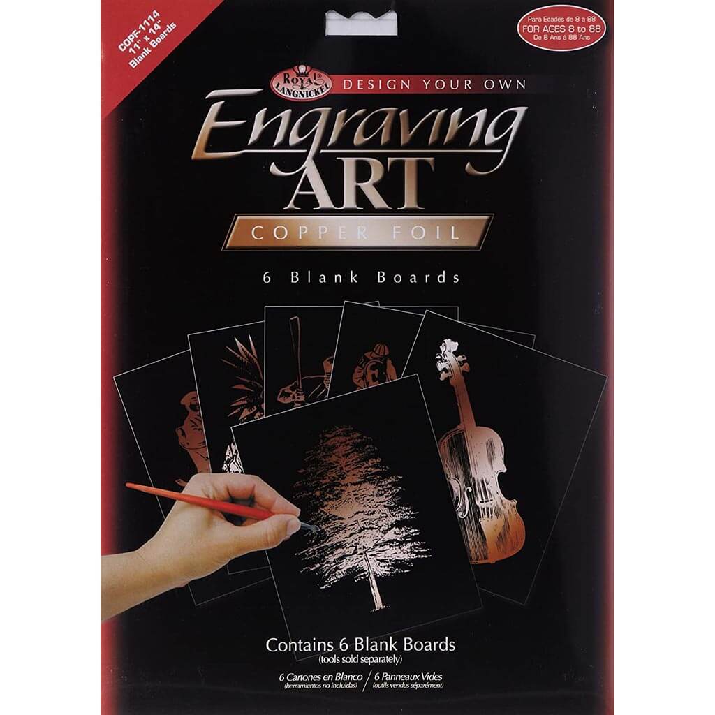 Design your own artwork with engraving art blank boards. Draw or trace your own designs on the board, then simply scrape away the lines to reveal your masterpiece in copper, gold, silver, white, holographic, rainbow or glow in the dark. Each package includes six blank engraving boards and instructions.