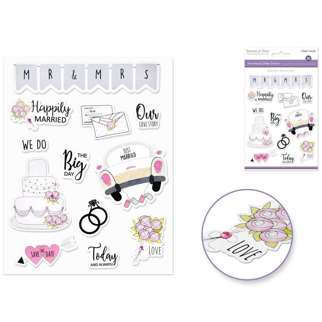 Handmade Sticker: 3D Glitter Mr. & Mrs. 4.5 x 5.5