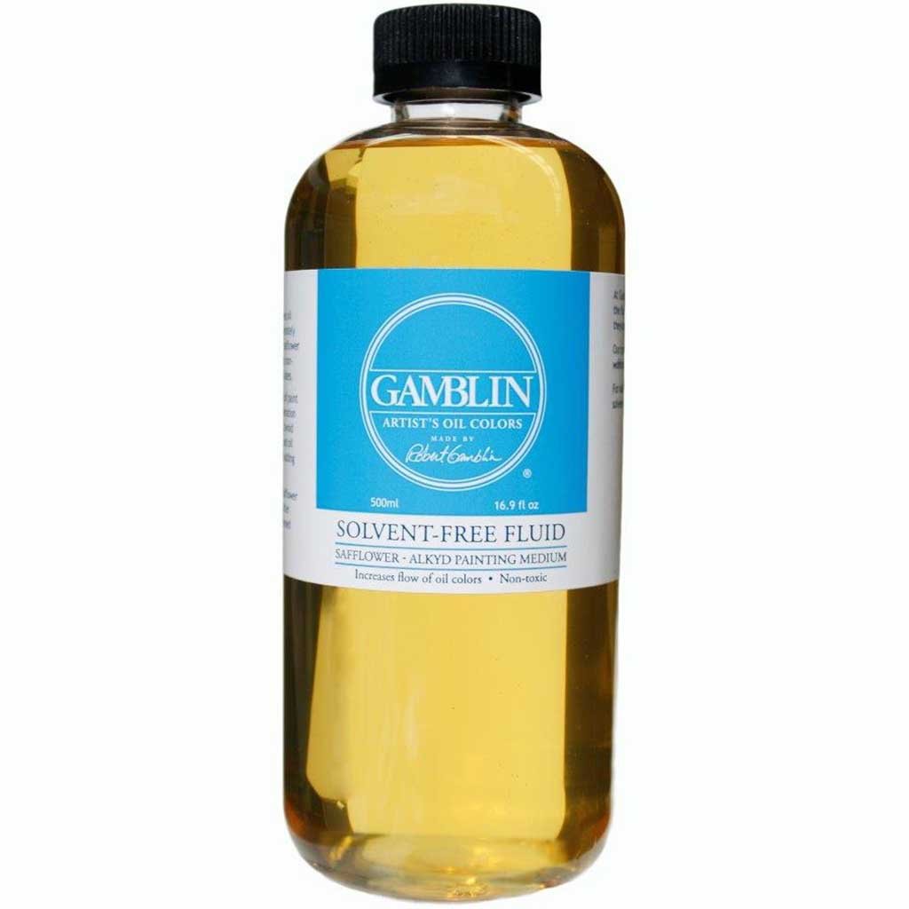 This fluid, solvent-free painting medium gives oil colors more flow and transparency. It has a moderately fast drying rate and increases gloss. Made from safflower oil and alkyd resin, it is non-toxic and contains no Gamsol or petroleum distillates.