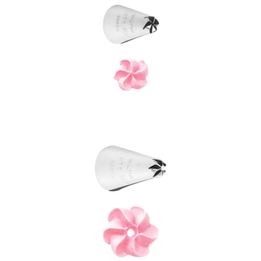 Wilton-Decorating tip. These icing tips simply screw onto Wilton decorating icing pouches or tubes and make it easy for you to create great looking designs on your cakes in minutes. This package contains one decorating tip made of nickel-plated brass. Dishwasher safe. Comes in a variety of styles. Each sold separately. Imported.