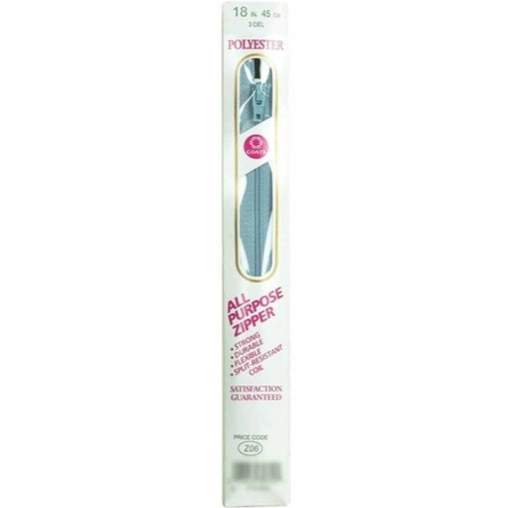 COATS&CLARK-Zipper. Soft, flexible and strong closed bottom zipper that was designed for comfort. Coats Polyester All Purpose Zipper features a coil zipper with a flat covered back so that the zipper is smooth against the skin. The coil is woven into the polyester tape so that it is split resistant, and the zipper does not need to be preshrunk! This all-purpose zipper is ideal for use in pants, skirts, dresses, sportswear and home decorating items. This package contains one 18in zipper.