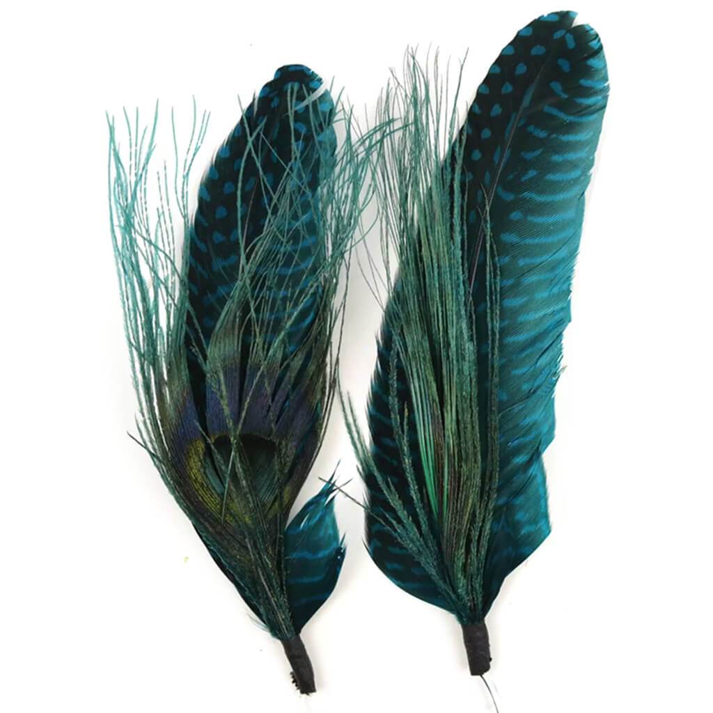 Natural Feather Pick with Nylon Loop Dark Cerulean Peacock