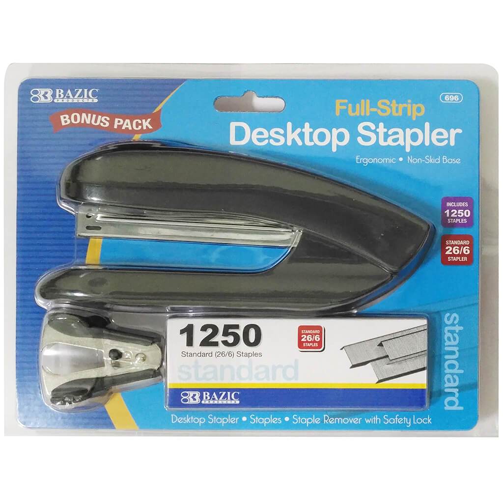 o Desktop full strip stapler set includes: 1 Stapler, 1 Staple Remover and 1250 standard (26/6) staples