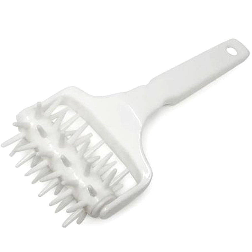 Quickly perforates pizza and pastry dough.