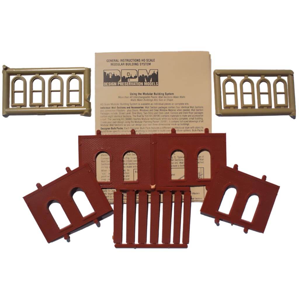 Four one-story wall sections per package 2 11/16" w x 1 7/8" h (6.82 cm x 4.76 cm) each