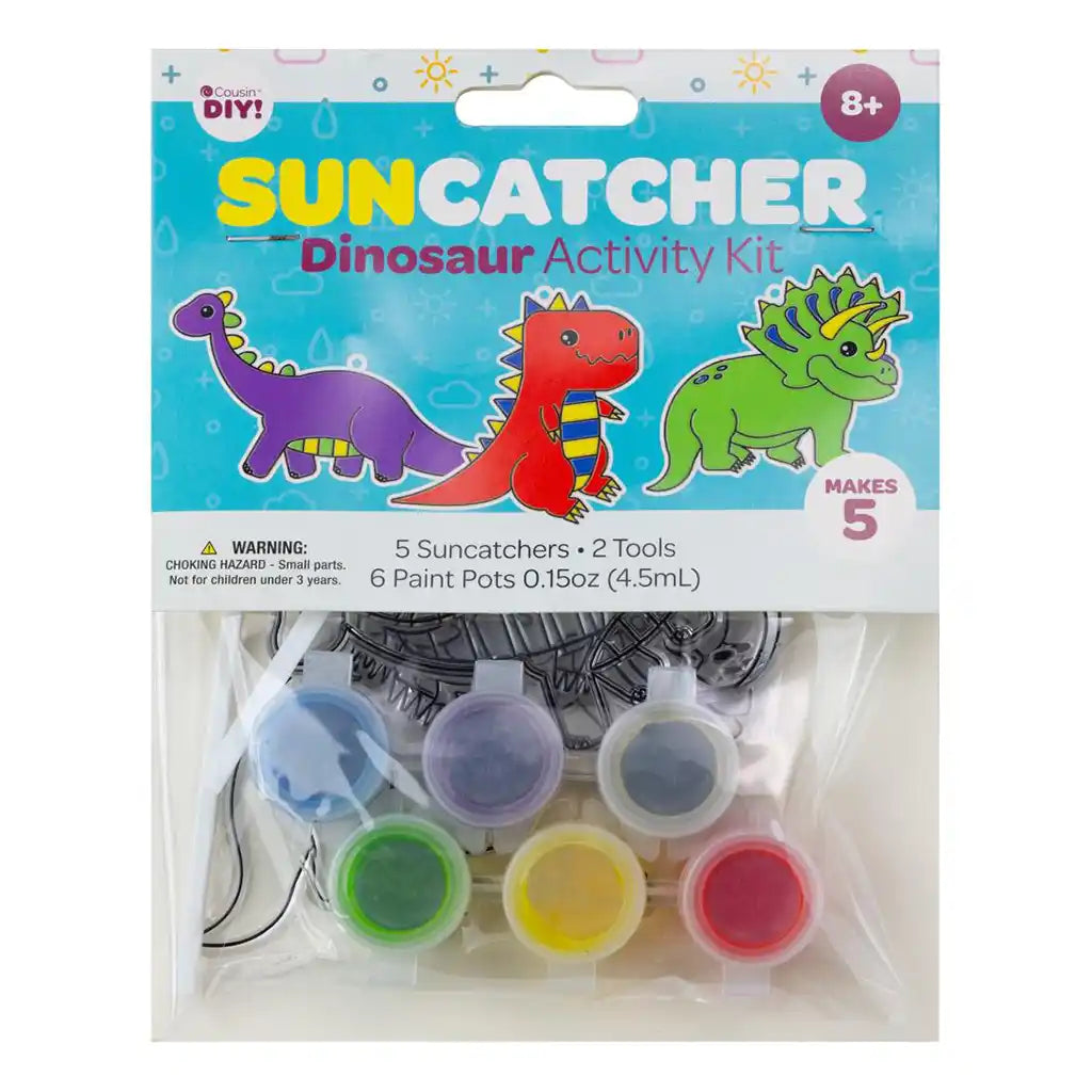 Embark on a prehistoric adventure with our 5-piece Suncatcher Kit. Craft colorful dinosaur suncatchers for a playful touch. This package contains the materials needed to create 5 suncatchers. WARNING: Choking Hazard. Not suitable for children under 3 years.