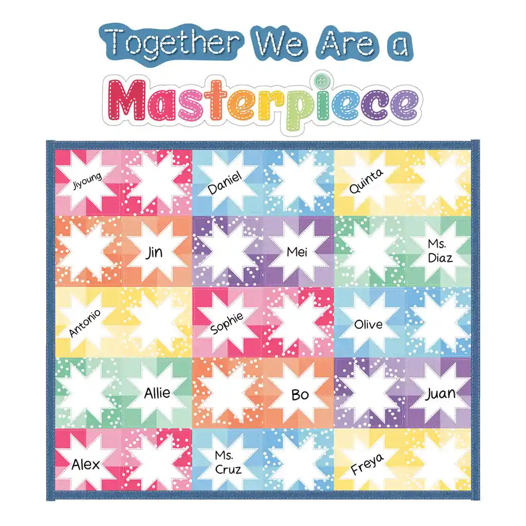 The inspirational banner is a great enhancement for showcasing student work, while the quilt squares are perfect for displaying student names throughout the year.