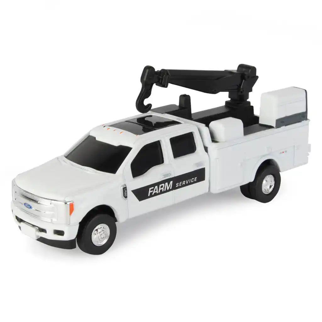 • Toy Pickup Truck: This 1:64 scale version of a Ford Farm Service pickup truck featuring sturdy die-cast and plastic construction is ready to inspire imaginative play