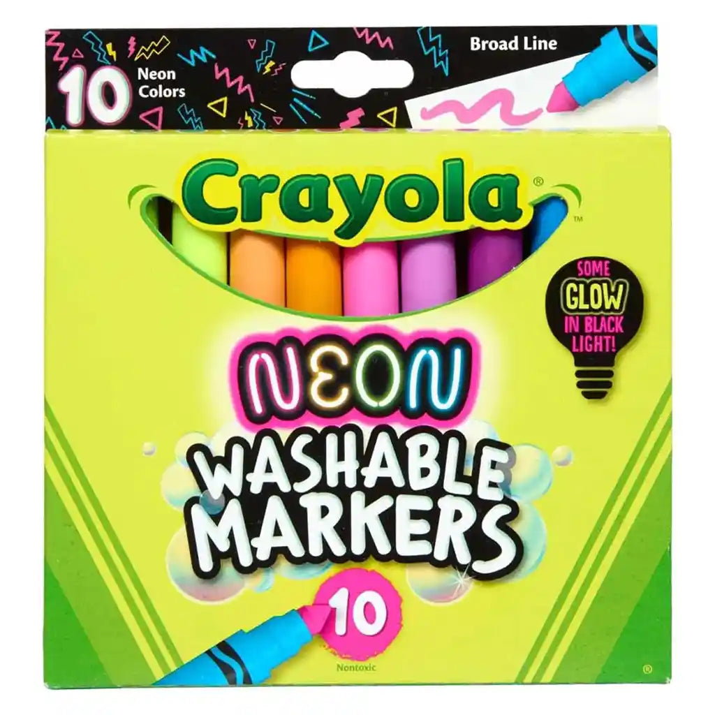 • 10 NEON WASHABLE MARKERS: Create bright art with 10 unique colors, including 3 neon and 7 fluorescent.