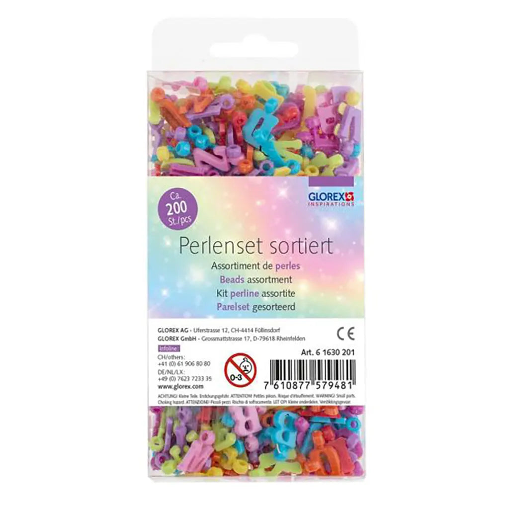 Colourful box with plastic letter beads. The beads have an eyelet for threading onto necklaces, cords or bracelets. • Suitable for many jewellery creations • Made from plastic • With hole opening for threading