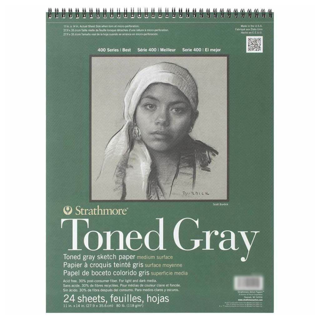 Toned Sketch paper is ideal for light and dark media including graphite, chalk, charcoal, sketching sticks, markers, china markers, colored pencils, pens and white gel pens. 100% recycled, and contains 30% post-consumer fiber. Wire bound with actual size sheets when removed at the micro-perforation line. Acid Free. 80lb medium surface 24 sheets per pad.